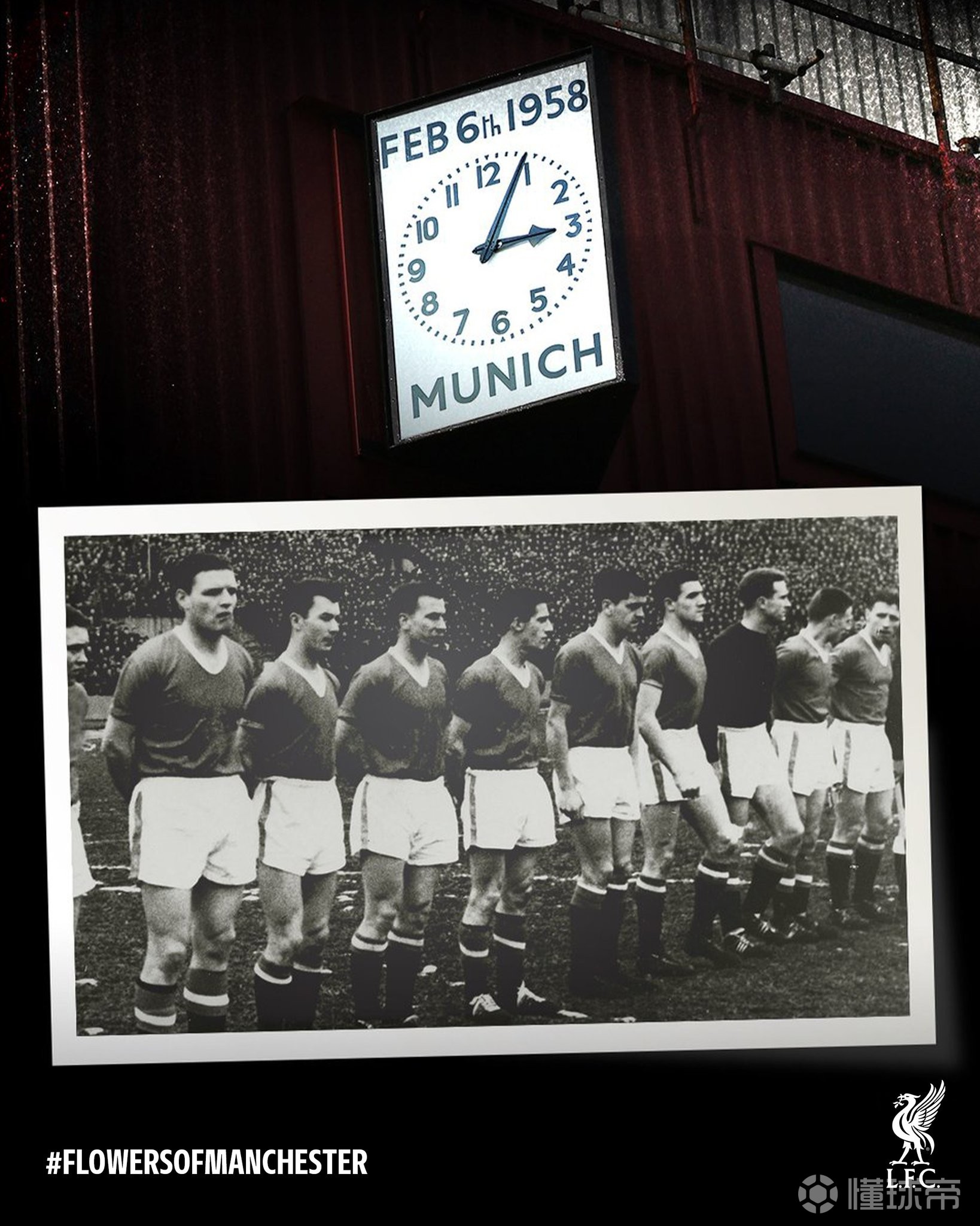 利物浦在官方声明中写道:“在慕尼黑空难纪念日到来之际,我们停下脚步,共同缅怀那场悲剧中的逝者。我们的思念与曼彻斯特联俱乐部同在。”声明还配上了象征纪念与尊重的标签#曼彻斯特之花。