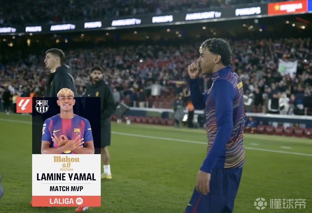 最终经过评选,亚马尔当选西甲官方全场最佳球员。