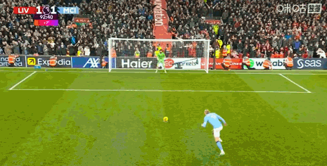 第90+3分钟,阿利松送点,哈兰德点射破门,曼城2-1反超利物浦!