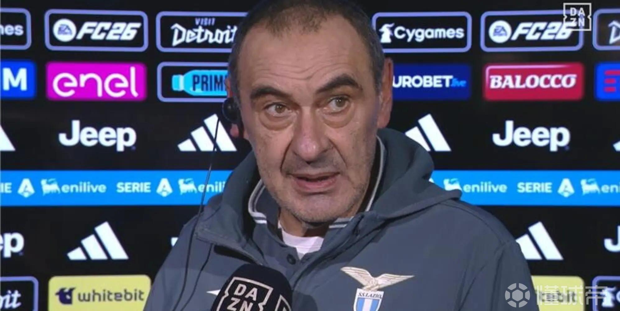 北京时间2月9日,在意甲第24轮的比赛中,拉齐奥在一度两球领先的情况下最终在客场被尤文图斯2-2绝平,赛后蓝鹰主帅萨里接受了DAZN的采访。