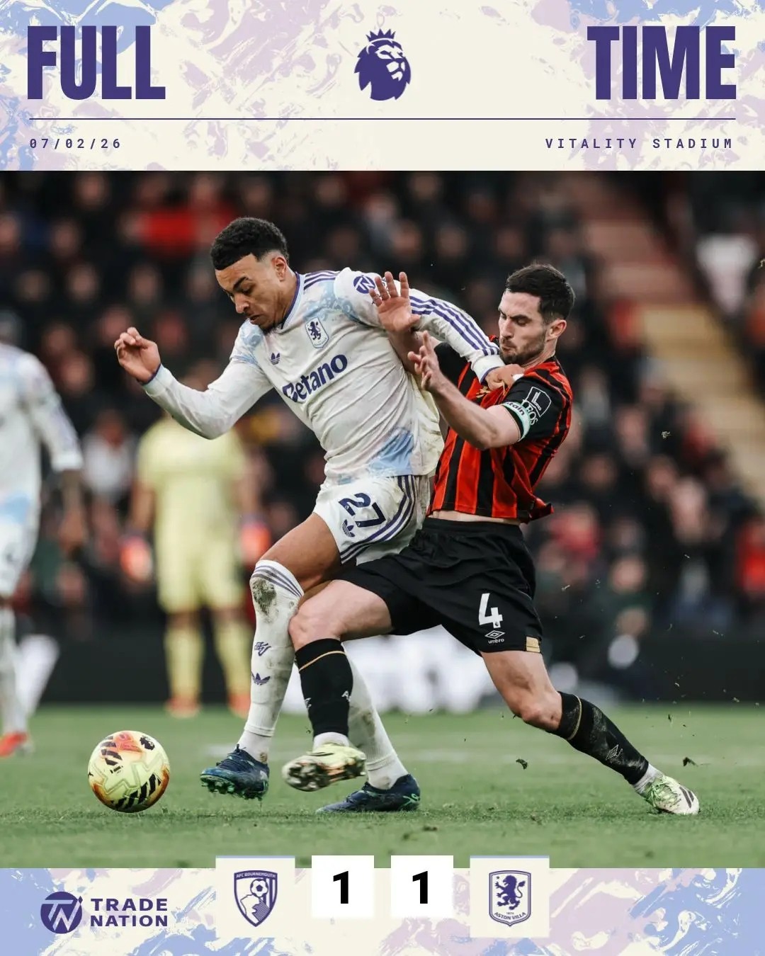 在本轮的英超联赛中,维拉客场1-1战平伯恩茅斯,连续两场比赛无缘获胜。