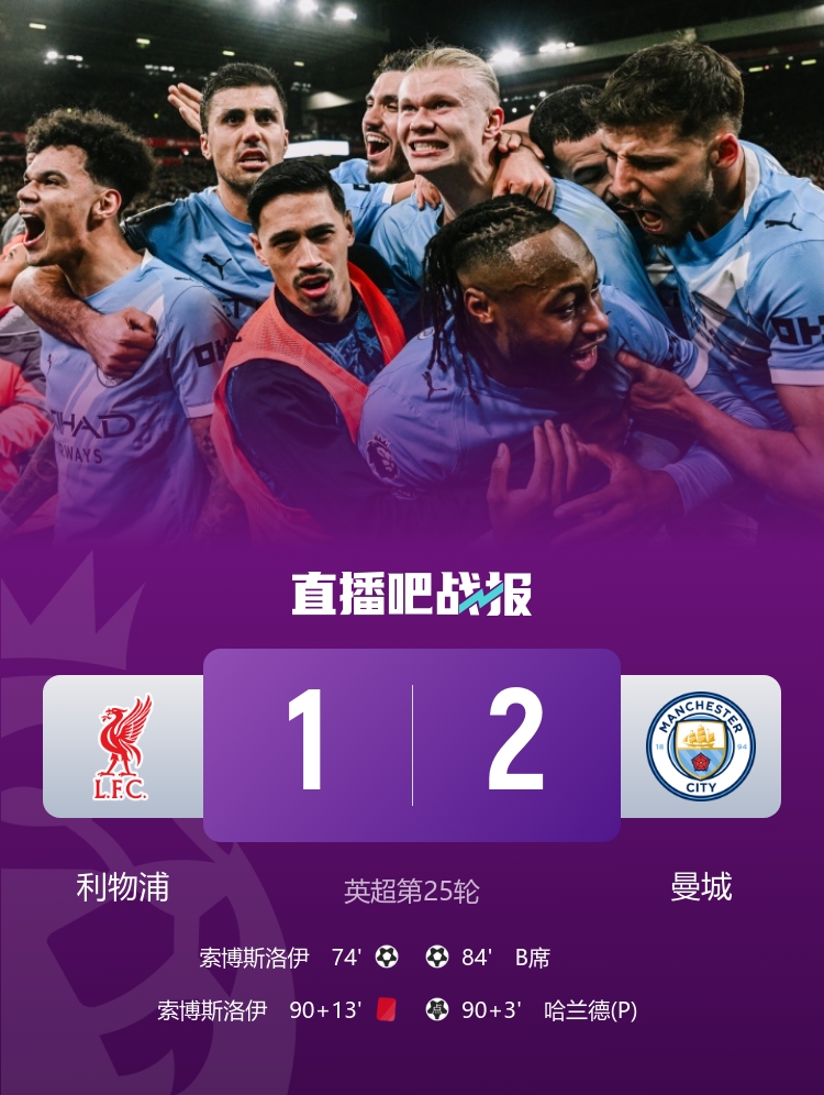 重头戏!谢尔基一计害三贤!曼城净胜球+1又-1,索博染红停赛,哈兰德也无缘双响~这比赛精彩!