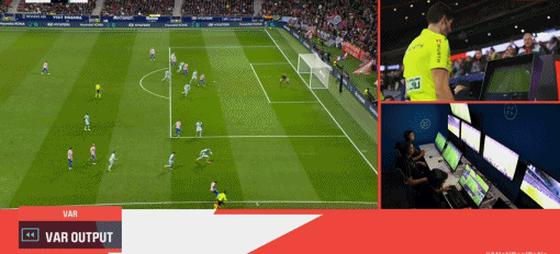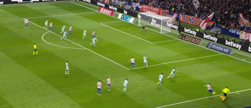 第83分钟,格列兹曼鞋尖越位,转播给出半自动越位系统画面