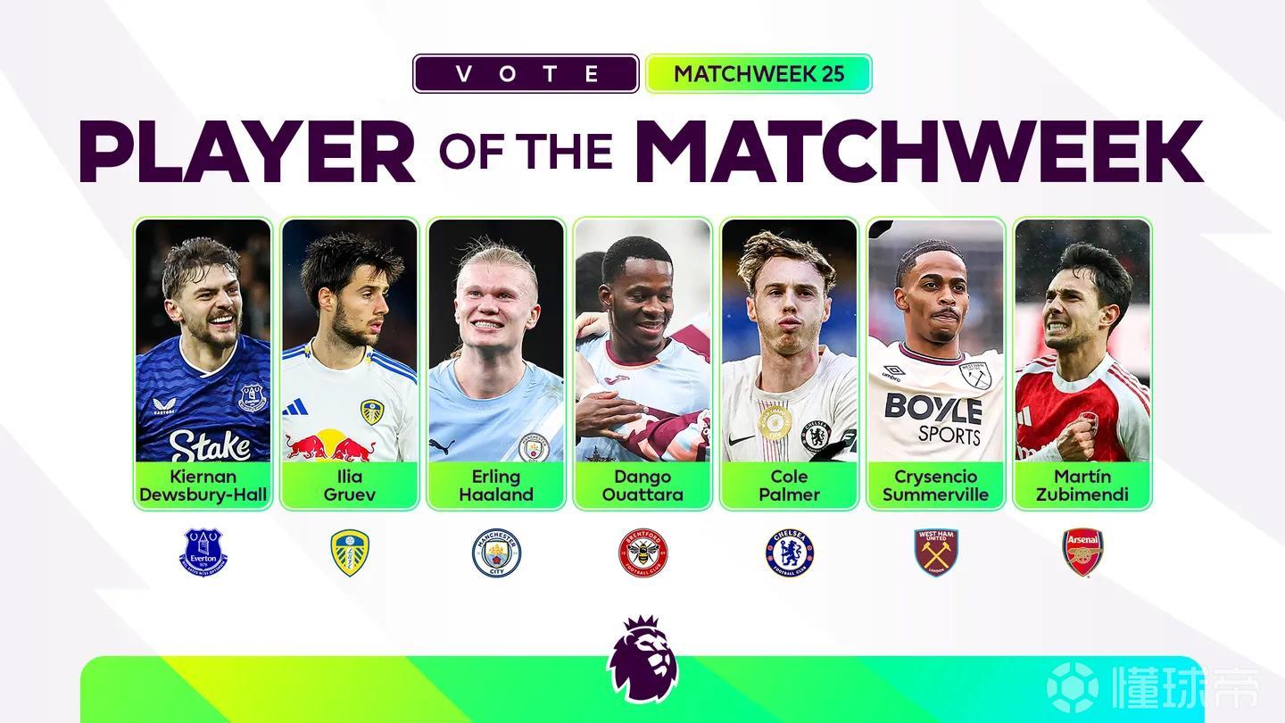 北京时间2月9日,英超官方公布了联赛第25轮的最佳球员候选名单,帕尔默领衔,哈兰德、苏比门迪在列。